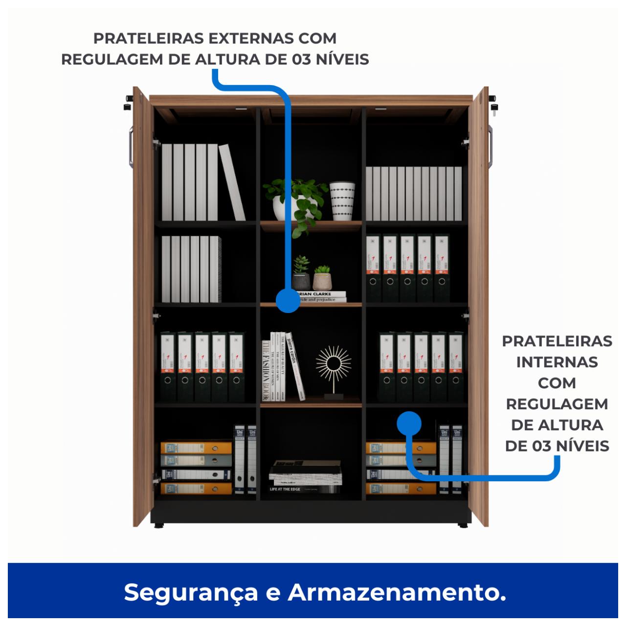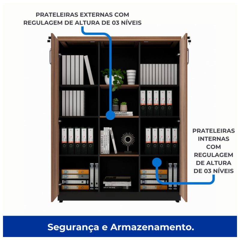 Armário Alto Credenza com Nicho – 1,61×1,20×0,45m NOGAL SEVILHA/PRETO – 21415