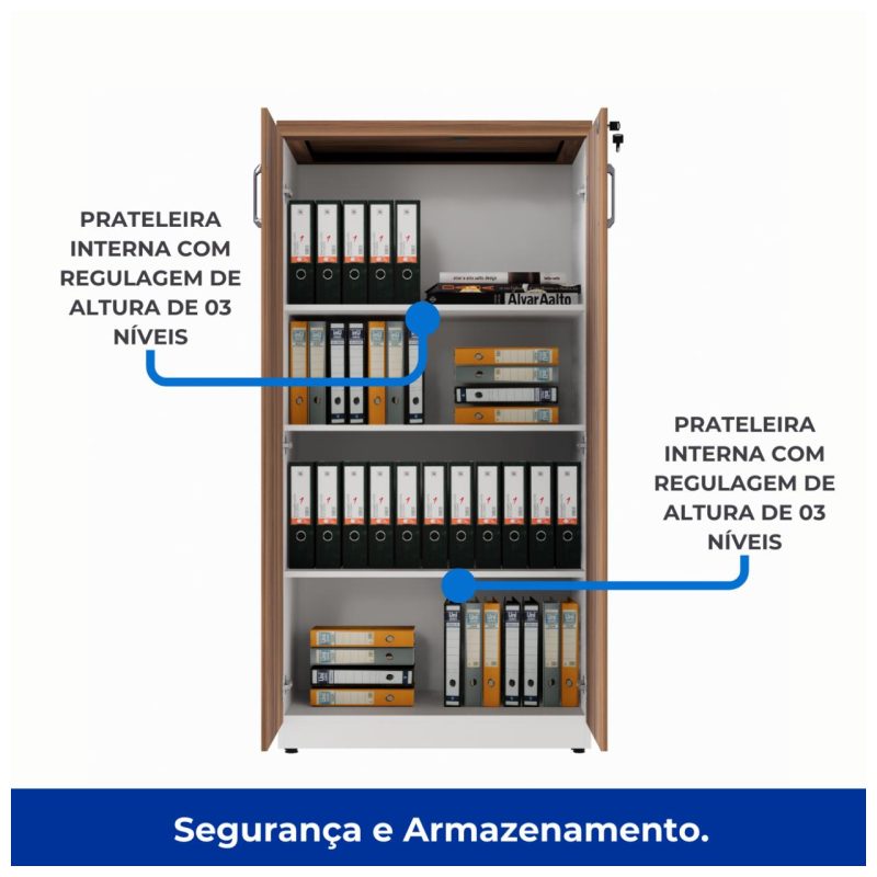 Armário Alto Fechado com 02 Portas – 1,61×0,80×0,45m NOGAL SEVILHA/BRANCO – 34315