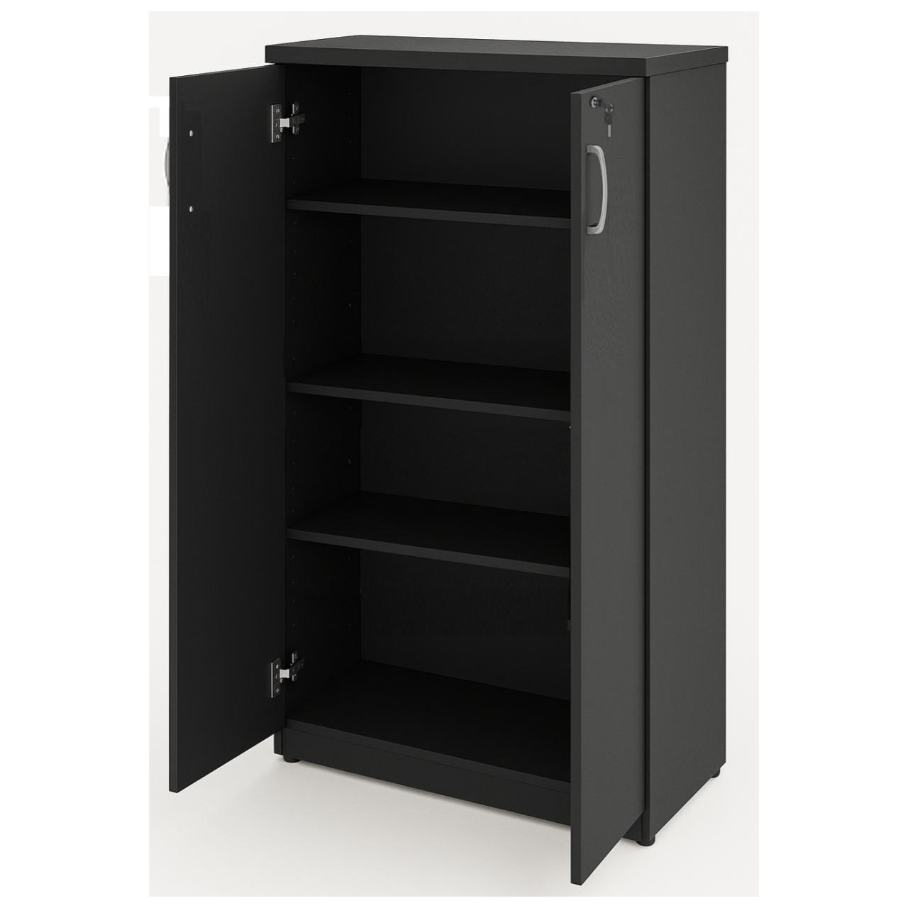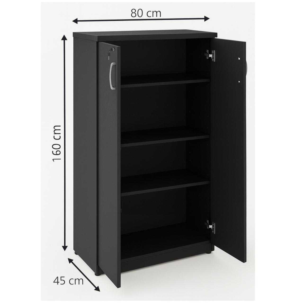 Armário de escritório compacto e funcional, desenvolvido para organização de documentos, materiais e objetos diversos. Possui design moderno, acabamento sofisticado em preto e estrutura reforçada para uso diário em ambientes corporativos, residenciais ou institucionais.