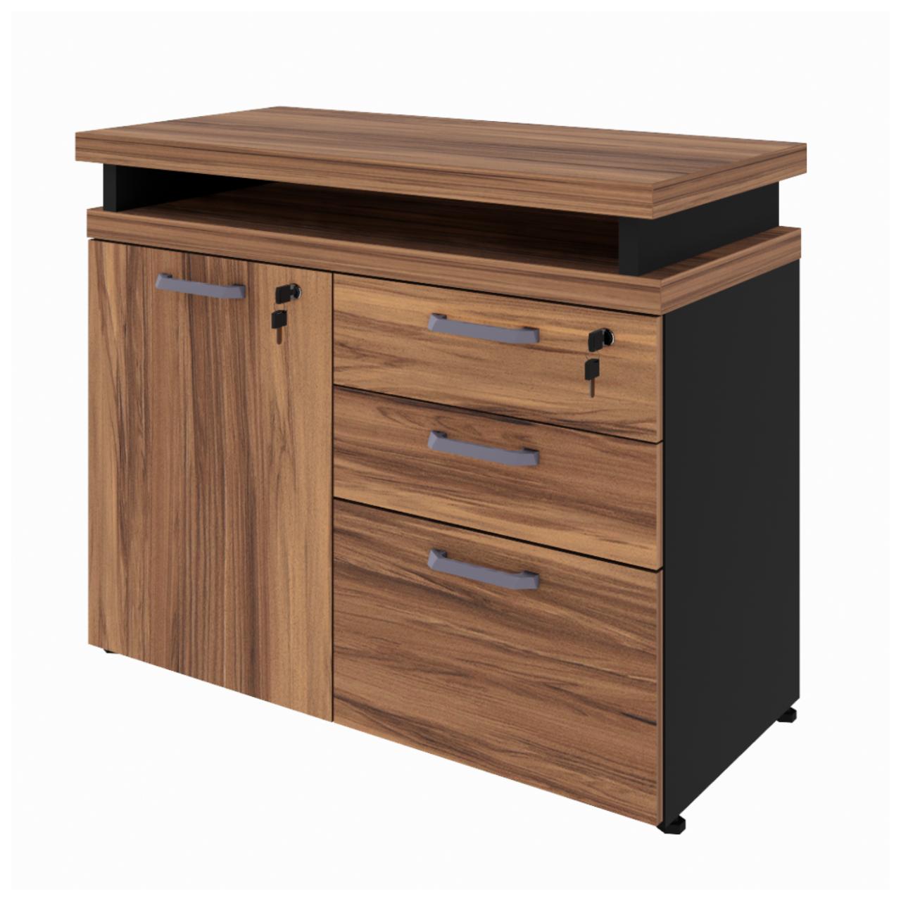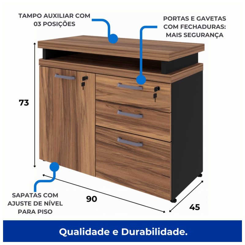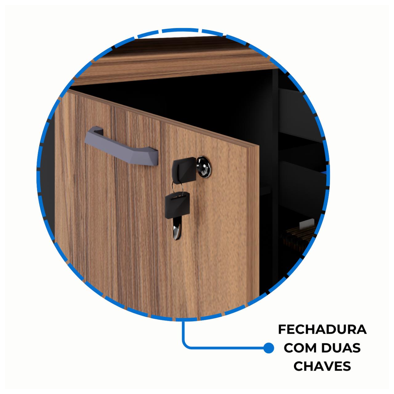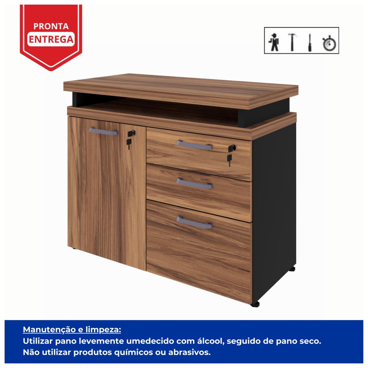 Armário Baixo 03 Gavetas e Porta (MISTO) NOGAL SEVILHA/PRETO – 21422