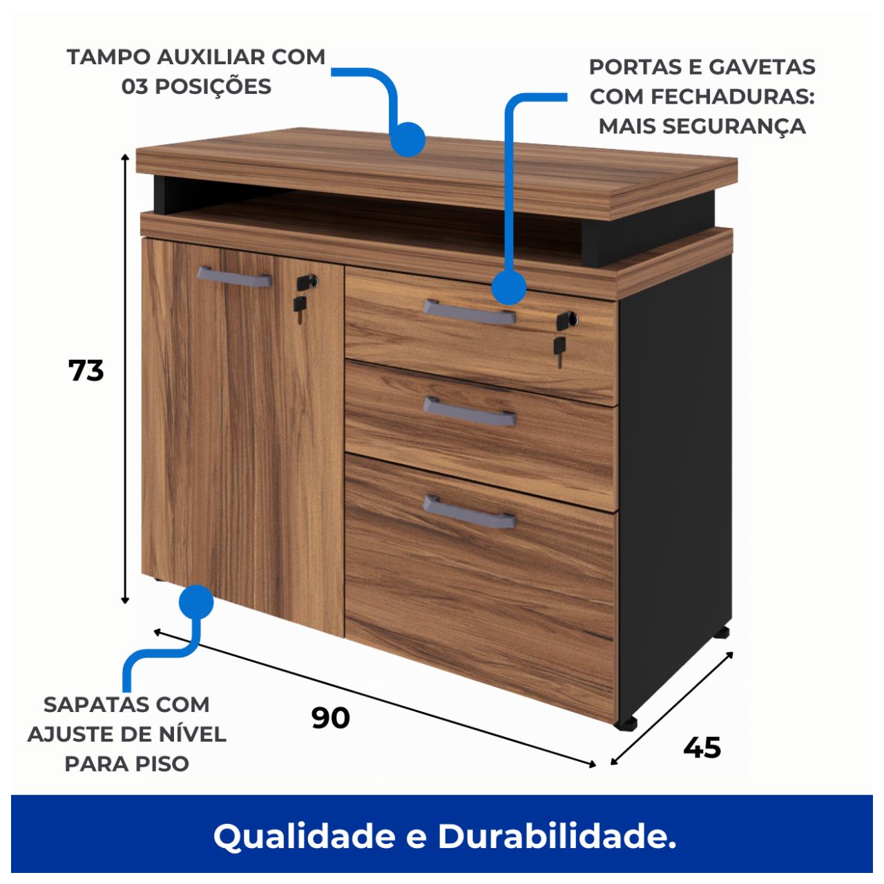 Outros Recursos / Mais informações: Sapatas Niveladoras de Altura / Sistema Minifix de Montagem / Manual de Montagem / Pasta Suspensa / Fechadura com 02 chaves