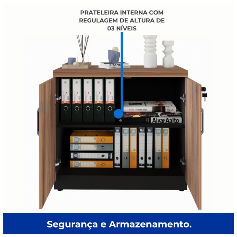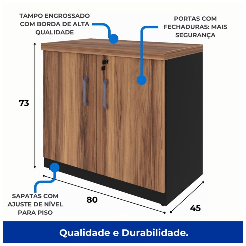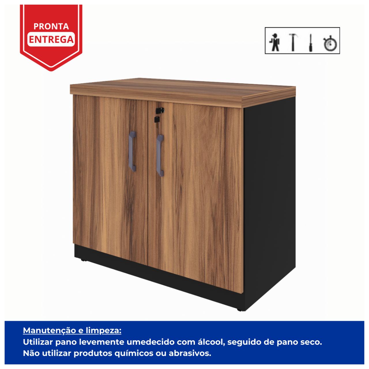 Armário Baixo com 02 Portas – 0,80×0,74×0,45 m NOGAL SEVILHA/PRETO – 21411