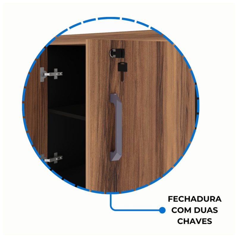 Outros Recursos / Mais informações: Sapatas Niveladoras de Altura / Sistema Minifix de Montagem / Manual de Montagem / Tampo Encabeçado / Fechadura com 02 chaves