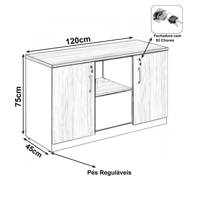 Composição: ARMÁRIO CREDENZA COM PORTAS DE ABRIR 3 prateleiras, sendo duas internas e 1 externa