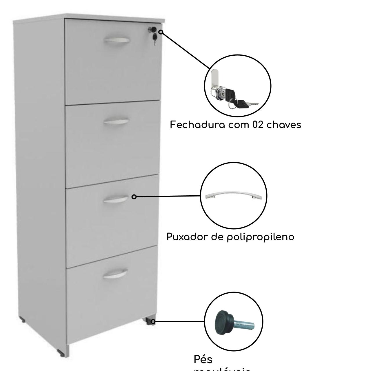 Número de Gavetas: 04 com Pasta Suspensa