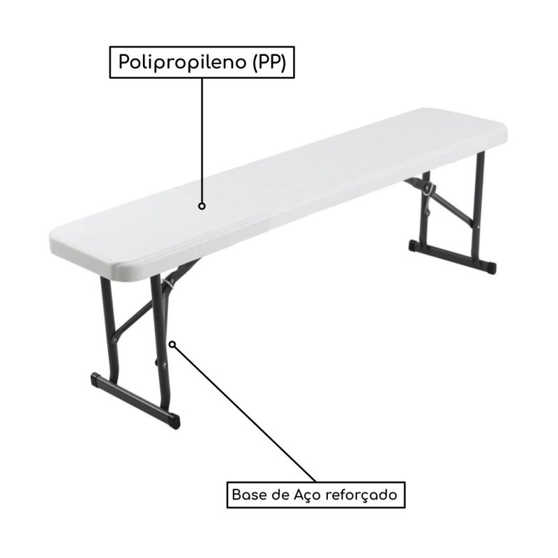 Banco Refeitório MASTER FIT C/ Pés Dobráveis 1,50×0,26×0,45m – Assento em PP BRANCO – 50072