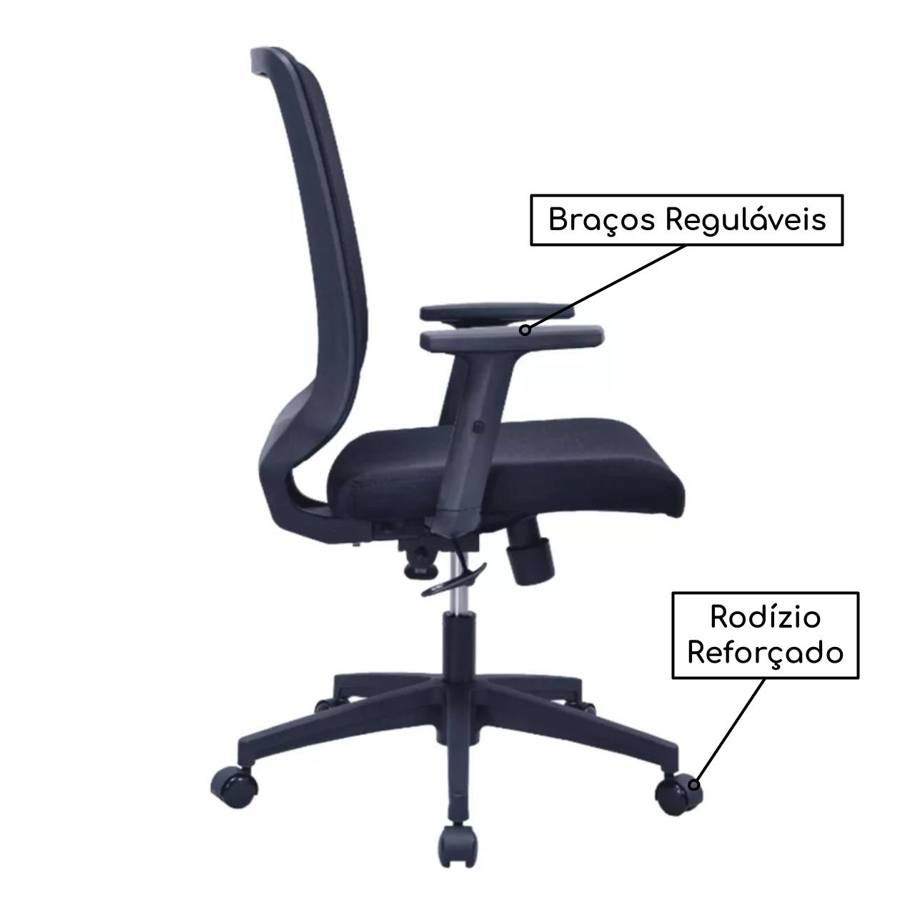 Cadeira de Escritório Diretor TELA TURIM – COR PRETO – Pollo Móveis – 34005
