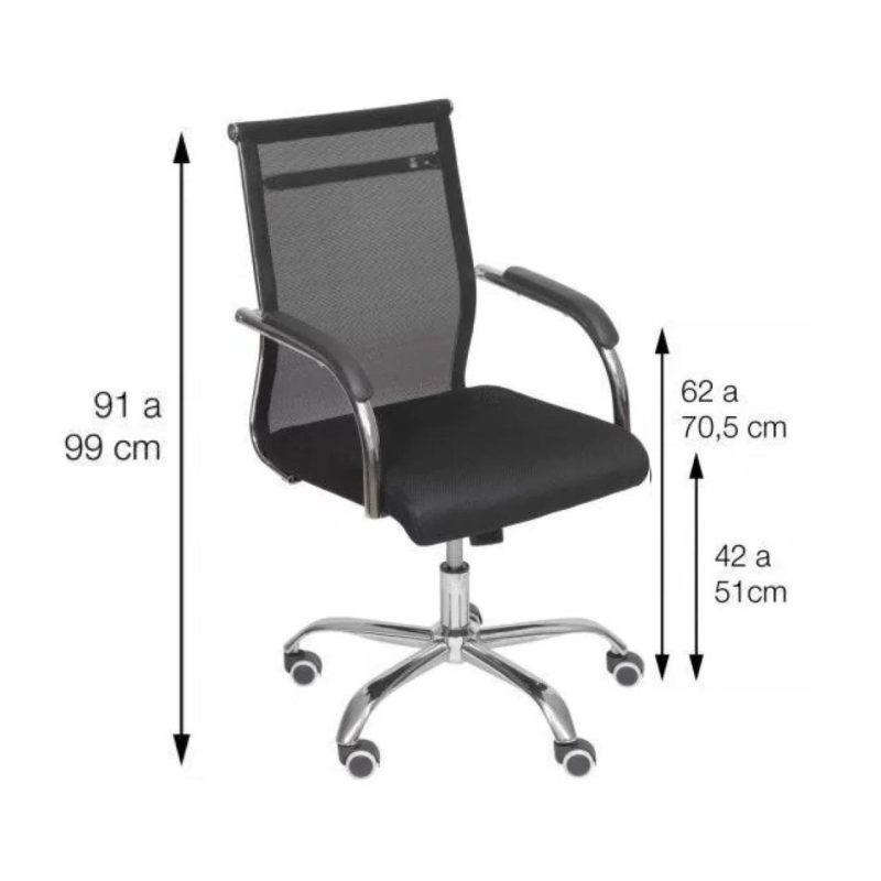 Cadeira de Escritório Executiva com Encosto em Tela Mesh, Base Cromada e Ajuste de Altura