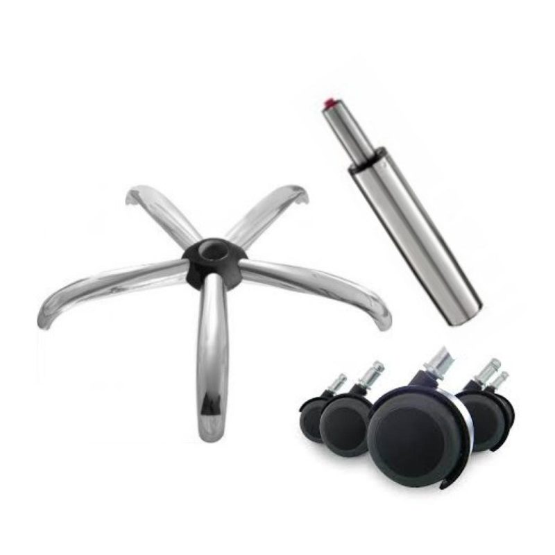 Base giratória modelo estrela com 5 patas em aço cromado espelhado, garantindo alta resistência estrutural, estabilidade e acabamento premium.Rodízios: