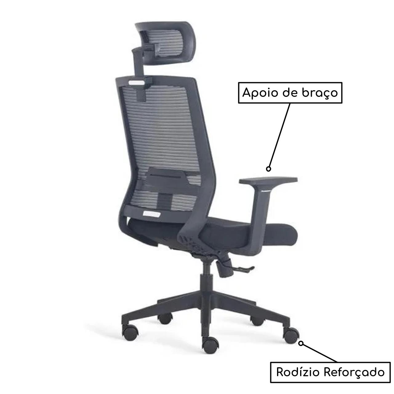 Cadeira Escritório Presidente Tela Berlim – PMD – Cor Preto – 30050