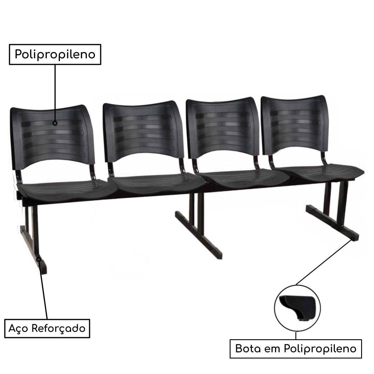 Cadeira Longarina Plástica 04 Lugares – Cor PRETO – PMD – 34199