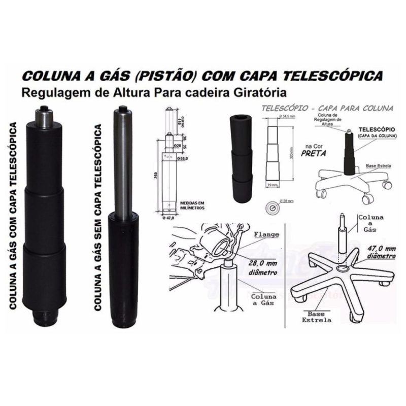 Outros Recursos / Mais informações: Pistão a Gás / 5 Rodizíos / Plataforma com Relax / Braços fixo Corsa / Corino Preto