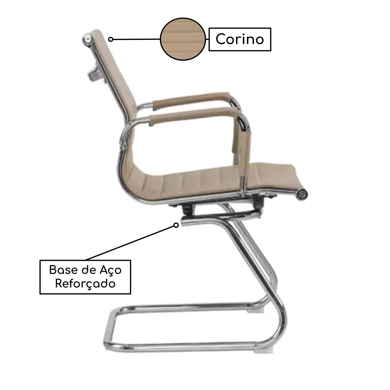 Material da Base: Base Fixa Cromada, Braços cromados com acabamento em corino, Base de aço reforçado