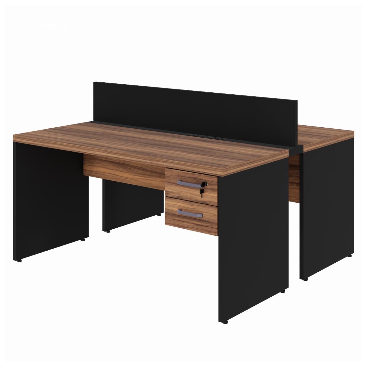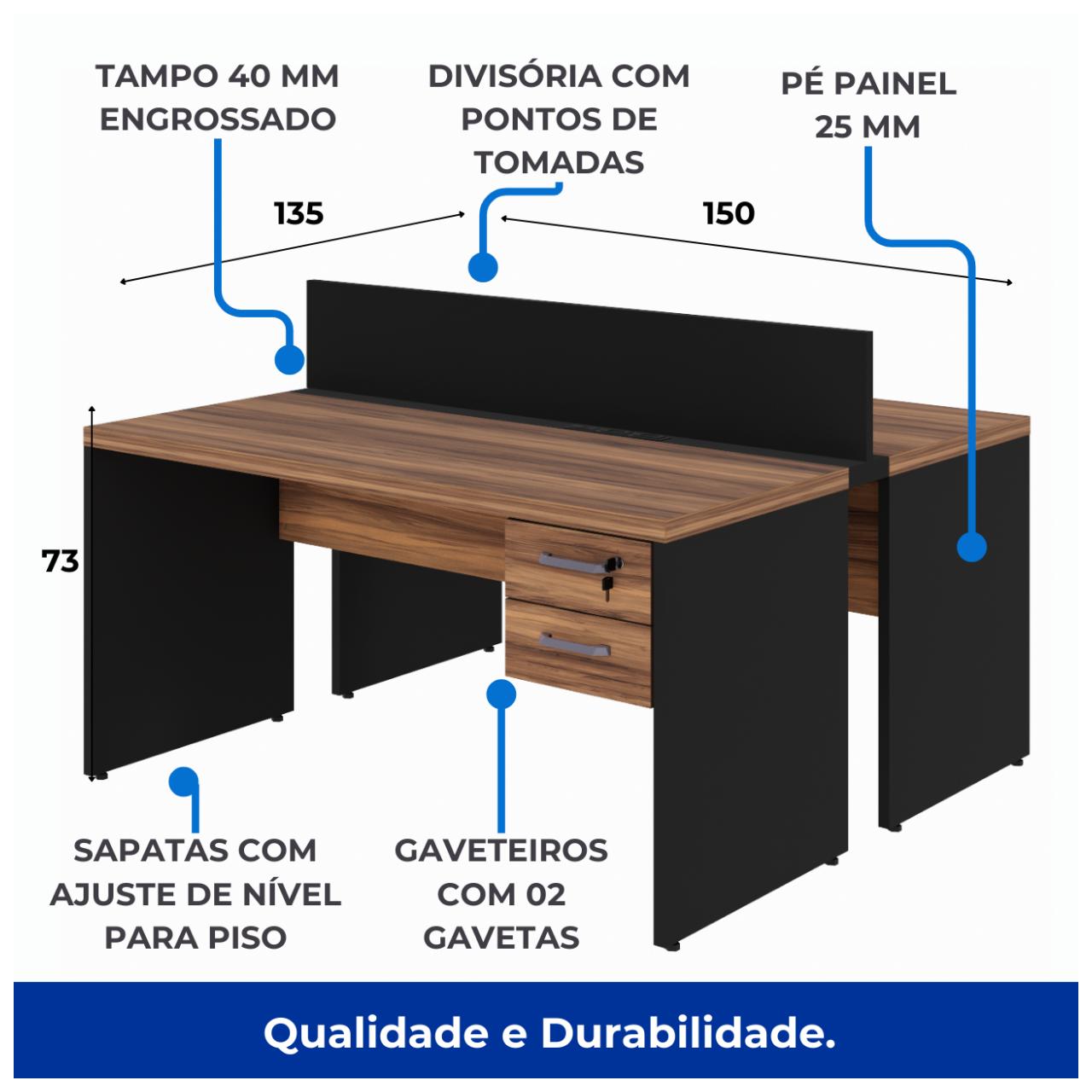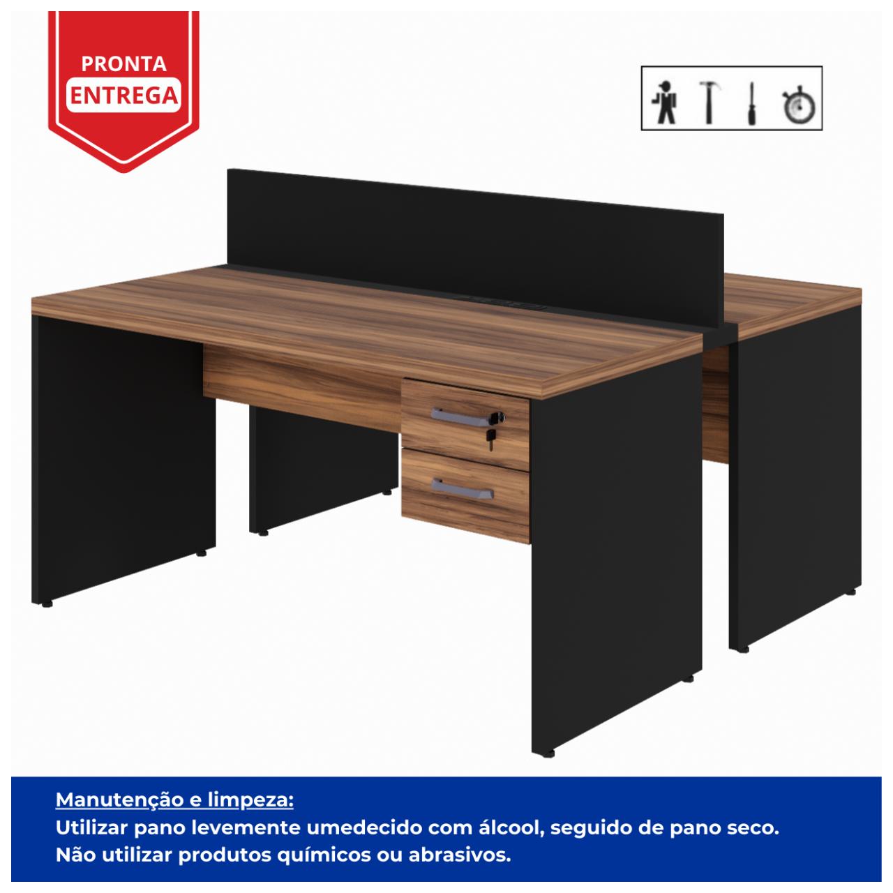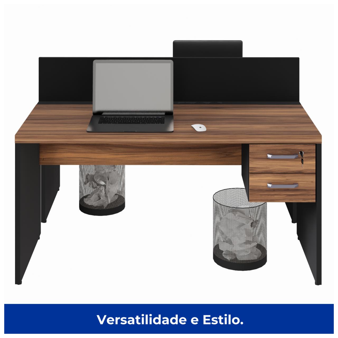 Estação de Trabalho 1,50×1,35m 02 Lugares c/ Gavetas c/ ponto de tomada Nogal Sevilha – 63088