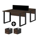 Estação de Trabalho Dupla 1,20×1,35m 02 Lugares c/ Gavetas c/ ponto de tomada PÉ QUADRO MARSALA/PRETO – 64001