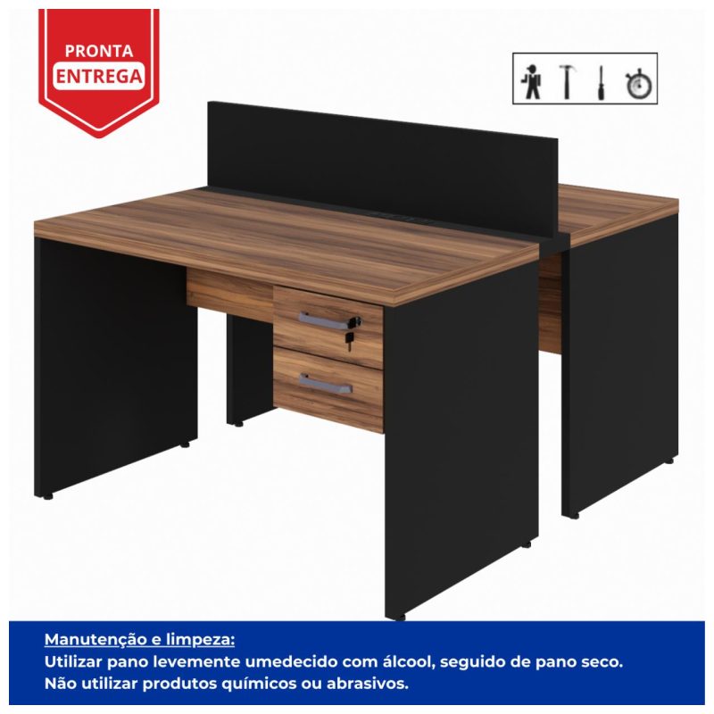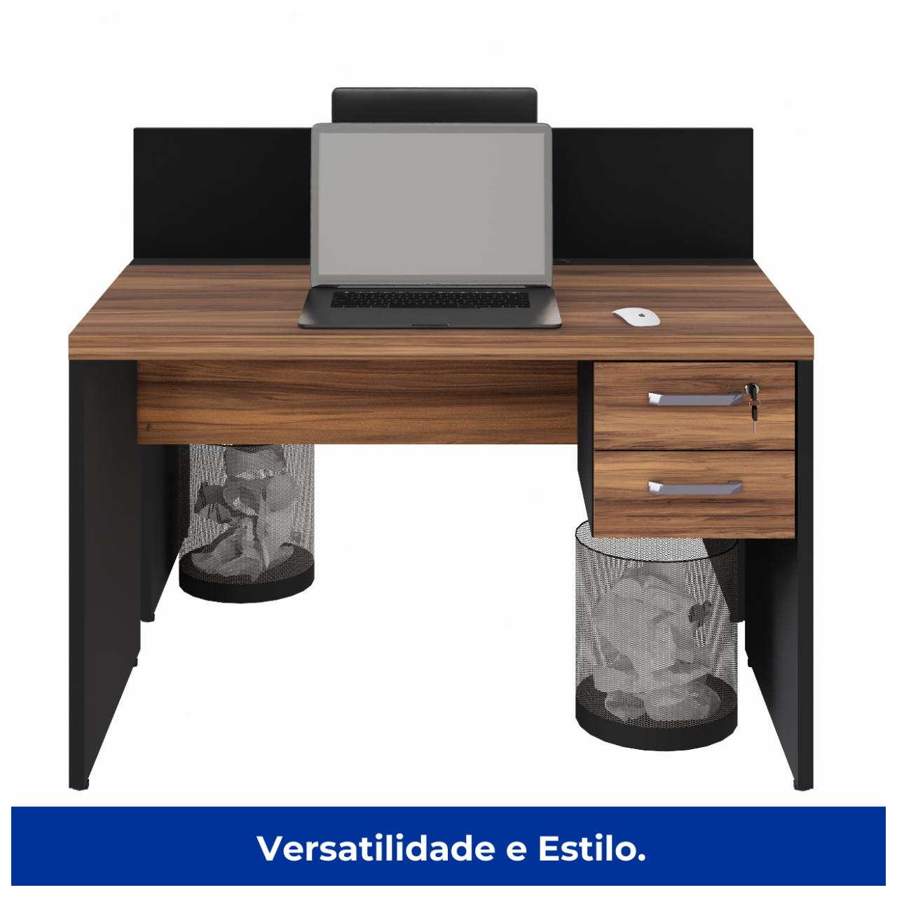 Estação de Trabalho Dupla 1,20×1,35m 02 Lugares c/ Gavetas c/ ponto de tomada Nogal Sevilha – 63086