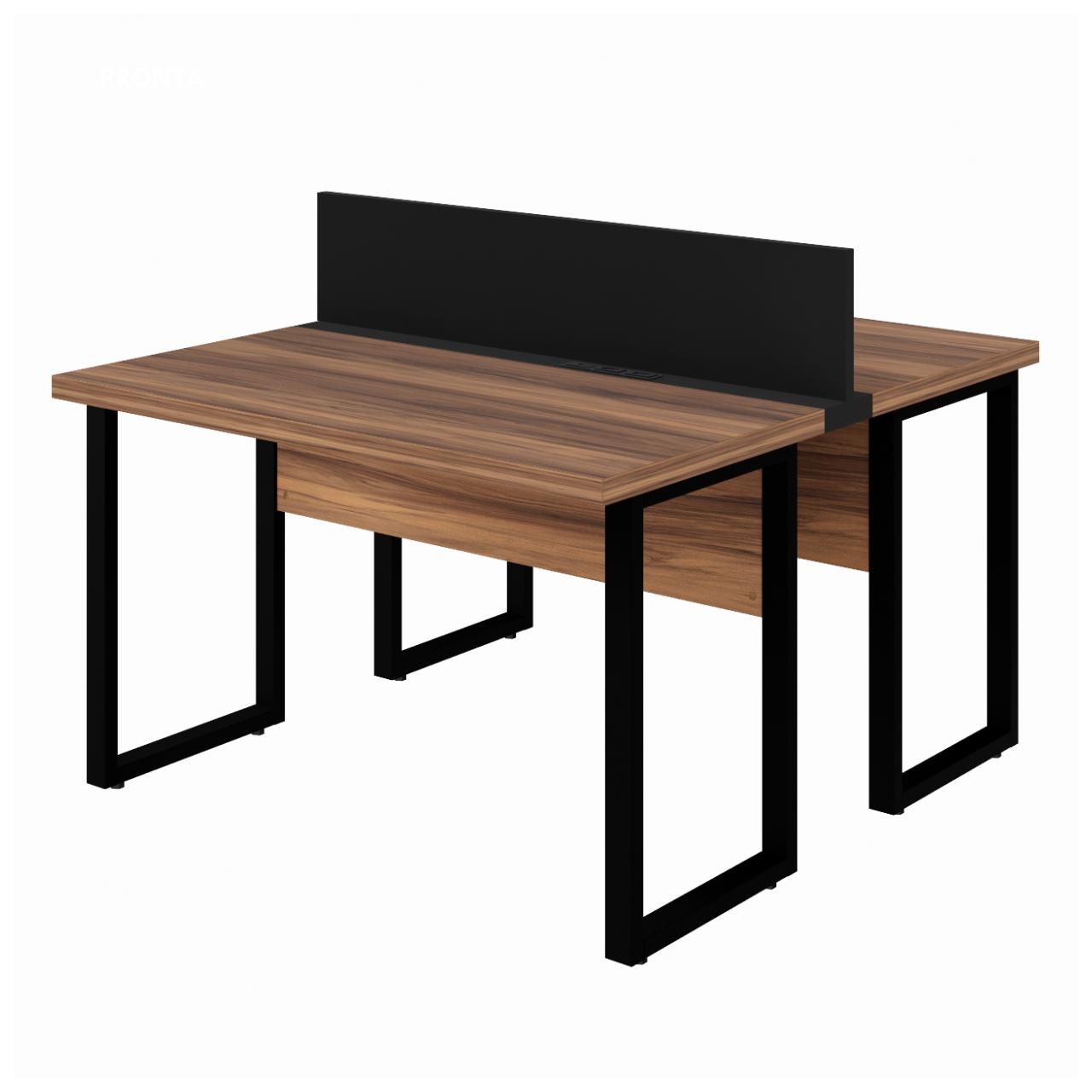Produto: Estação de Trabalho Dupla 1,20×1,35m 02 Lugares s/ Gavetas c/ ponto de tomada PÉ QUADRO – Cor Nogal Sevilha – 63096