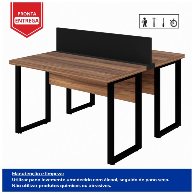 Estação de Trabalho Dupla 1,20x1,35m 02 Lugares s/ Gavetas c/ ponto de tomada PÉ QUADRO - Cor Nogal Sevilha - 63096