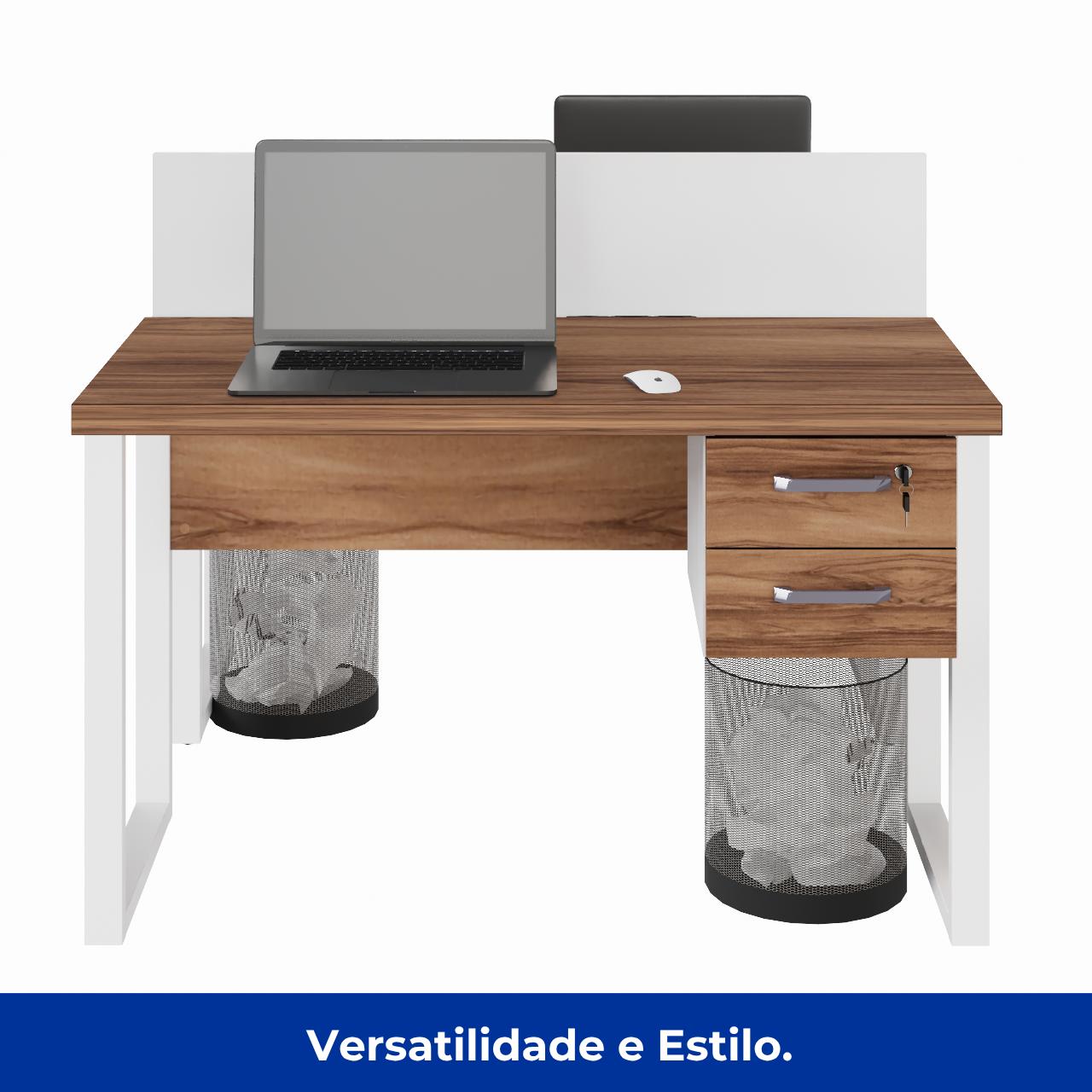 Estação de Trabalho Dupla 1,20×1,35m com Gaveteiro e Tomada – Pé Quadro