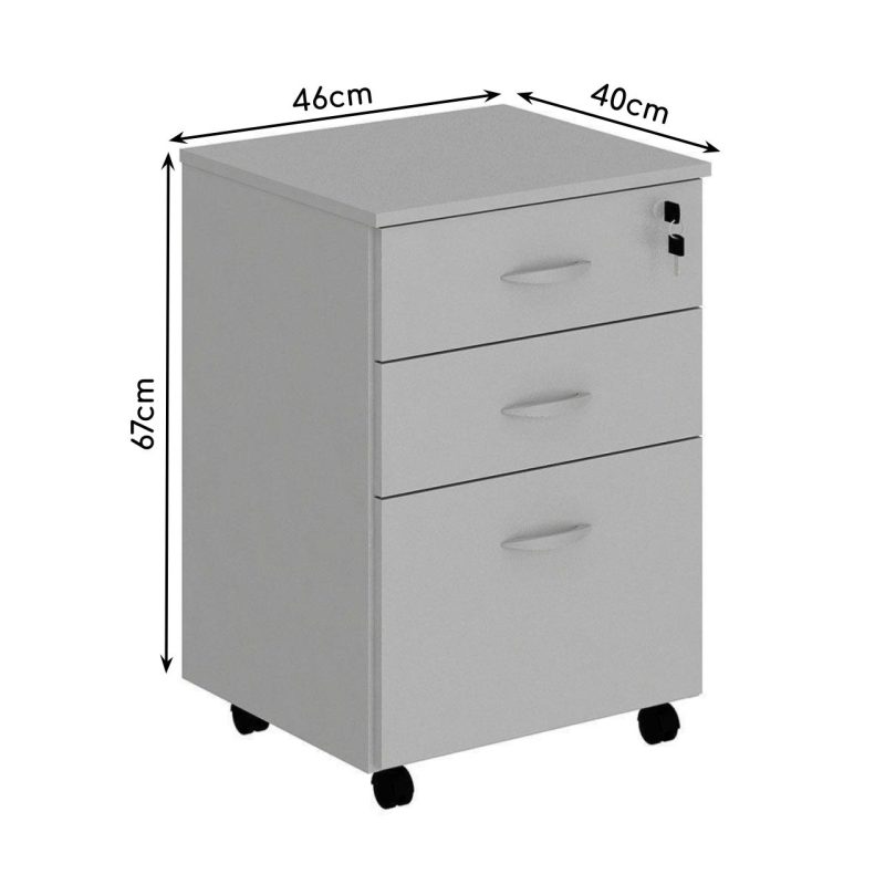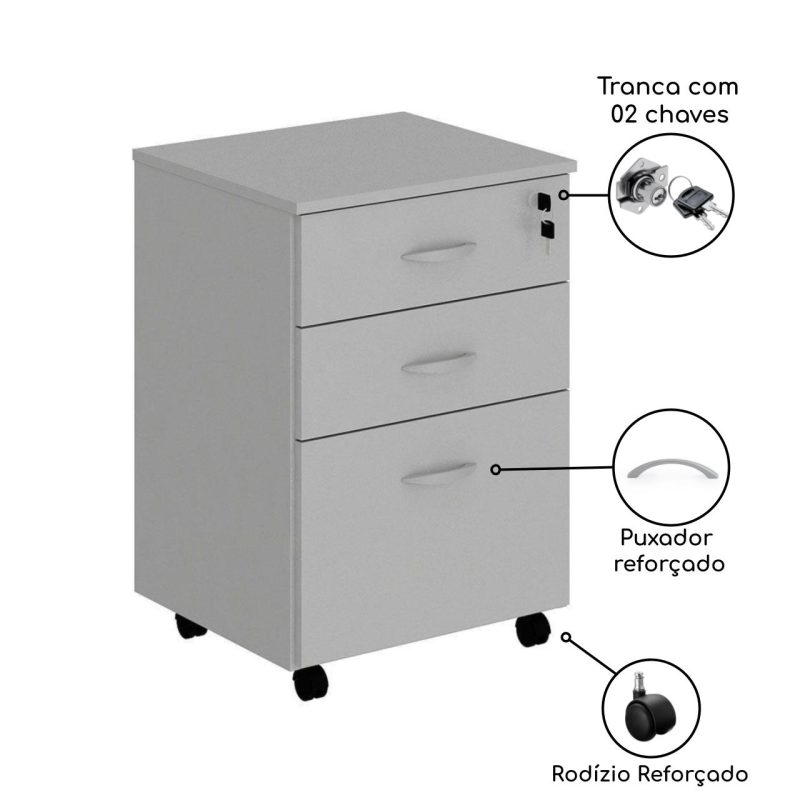 Gaveteiro Volante 03 Gav. 0,67×0,46×0,40m – Cor Cinza 21210