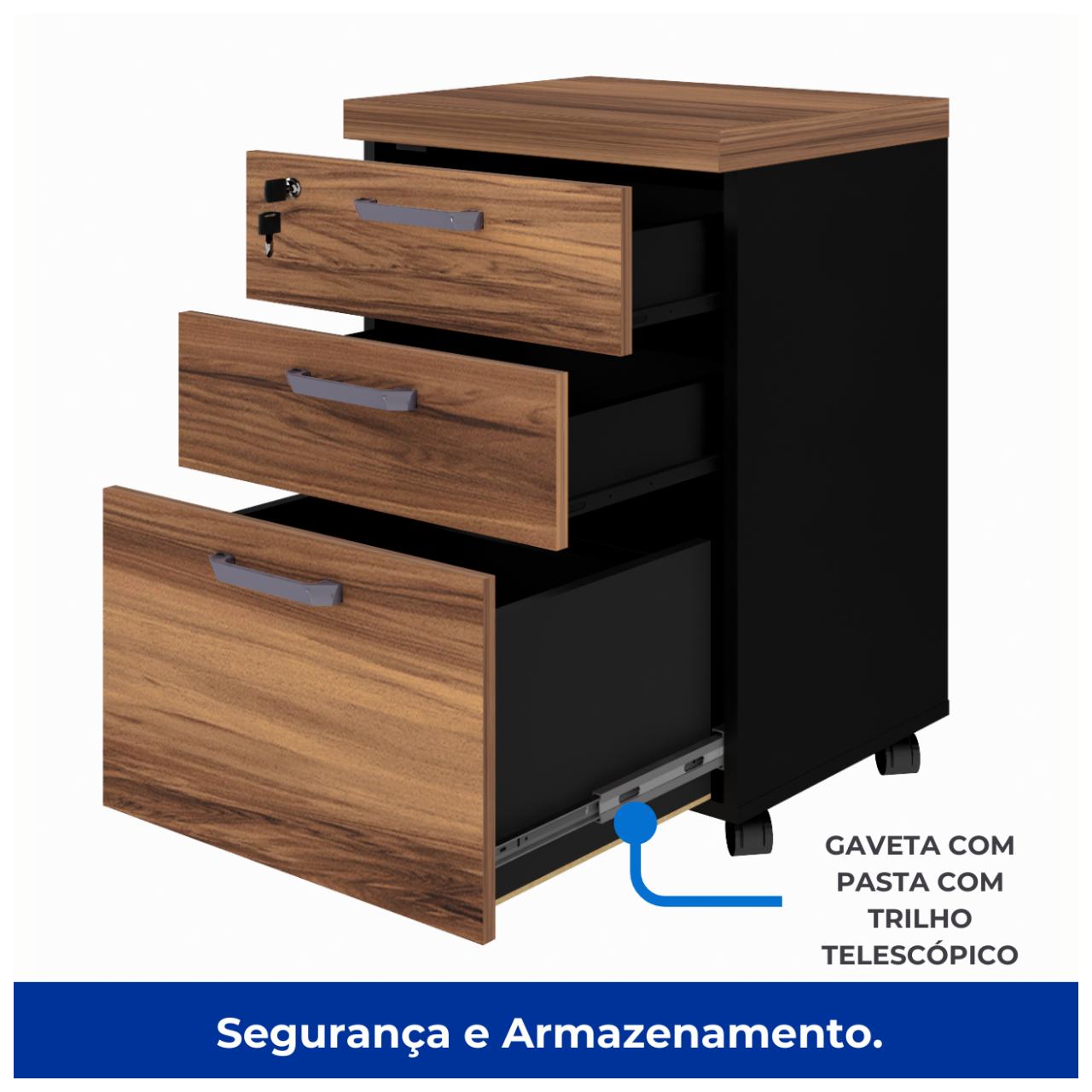 Outros Recursos / Mais informações: Sapatas Niveladoras de Altura / Fechadura na Primeira Gaveta de Cima / 02 Gavetas e 01 Pasta suspensa