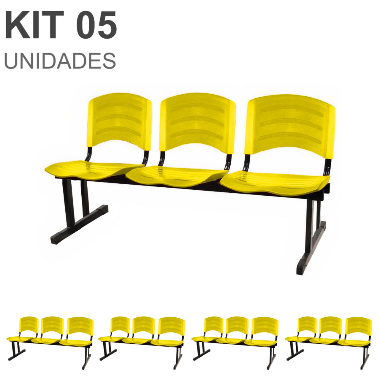 Kit 05 Cadeiras Longarinas PLÁSTICAS 03 Lugares – Cor Amarelo 33080