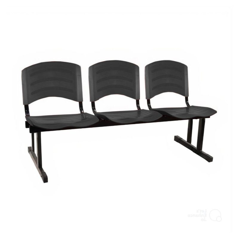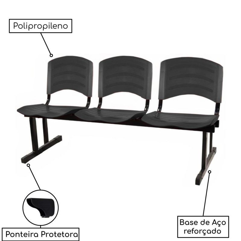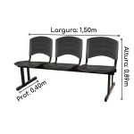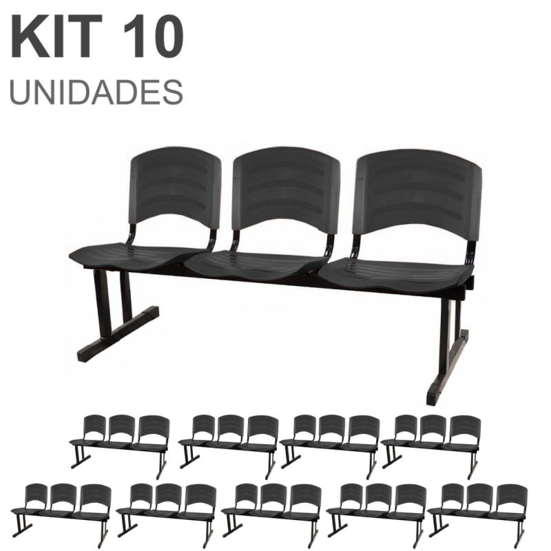 Kit 10 Cadeiras Longarinas PLÁSTICA 03 Lugares – Cor PRETO 33039