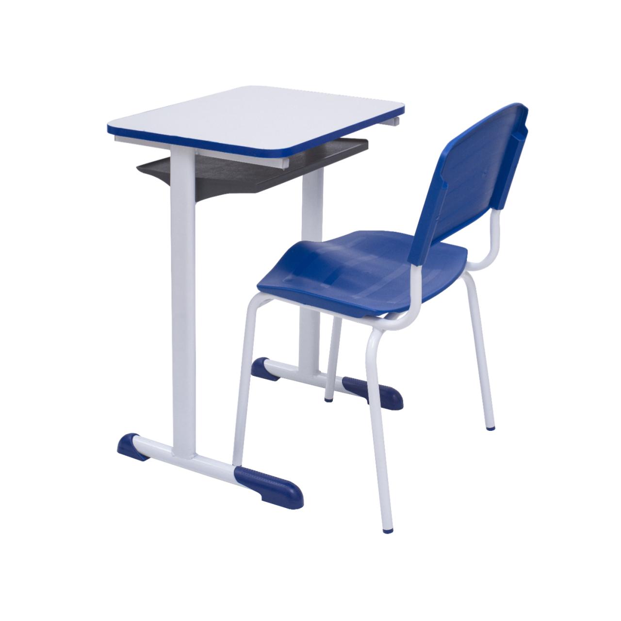 Kit Escolar Individual AZUL – (Mesa e Cadeira) – ADULTO – MDF – COR AZUL – 40095