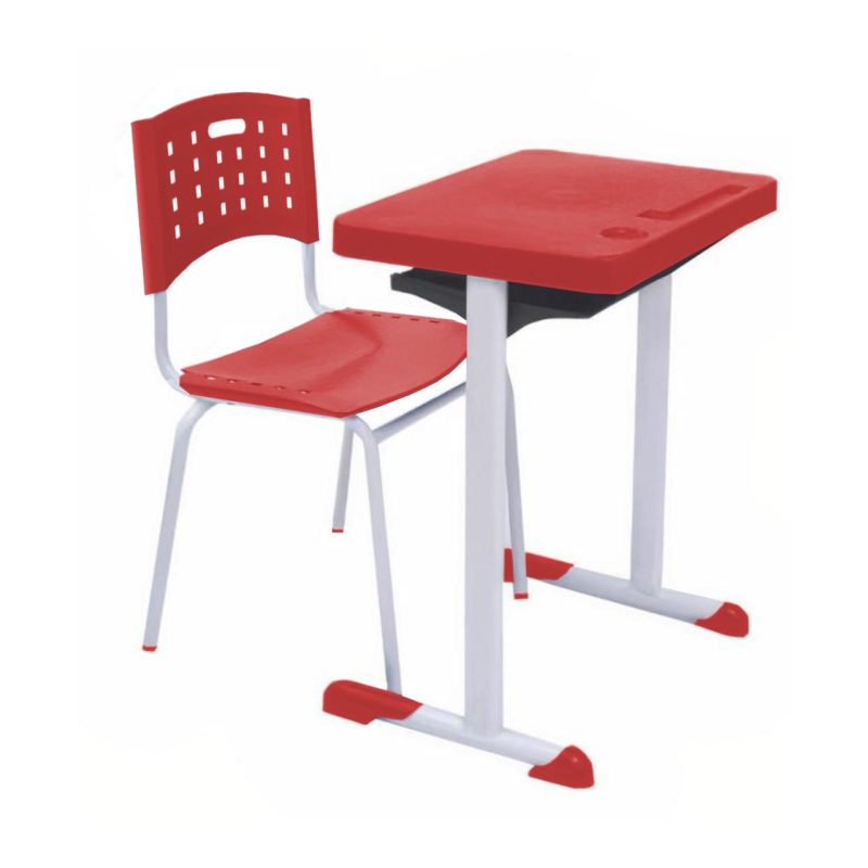 Kit Escolar Individual AZUL – (Mesa e Cadeira) – ADULTO – TAMPO PLÁSTICO - COR VERMELHO - REALPLAST - 54005