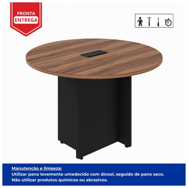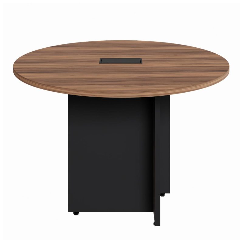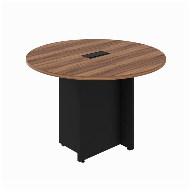 Mesa de Reunião Redonda c/ Caixa de Tomadas -1,10×1,10×0,74m – NOGAL SEVILHA / PRETO – 21418