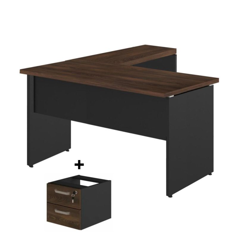 Mesa em L (Mesa 1,35m + Mesa Auxiliar) – C/ Gavetas MARSALA/PRETO – 25423