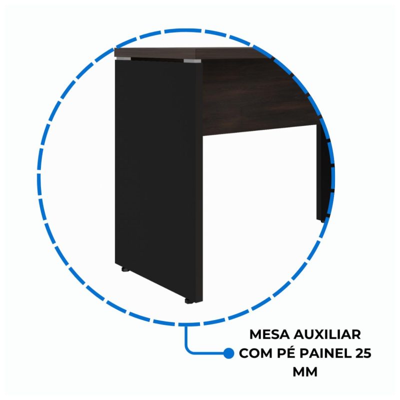 Mesa em L (Mesa 1,35m + Mesa Auxiliar) – S/ Gavetas MARSALA/PRETO – 25422