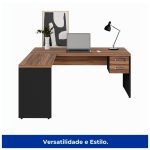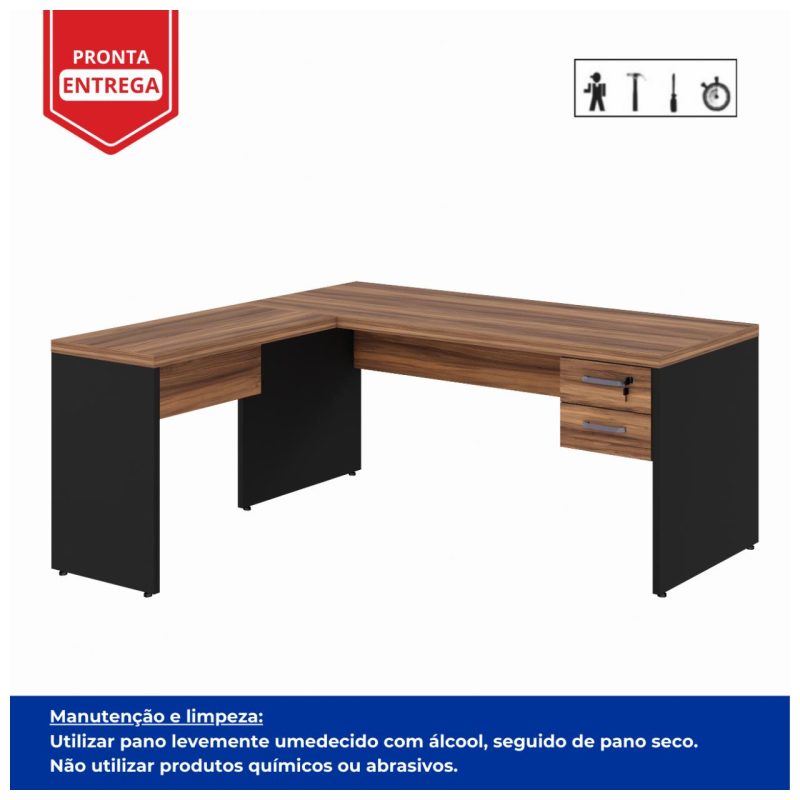 Produto: Mesa Escritório em L Mesa 1,70m + Mesa Auxiliar 02 Gavetas Nogal Sevilha / Preto 21479