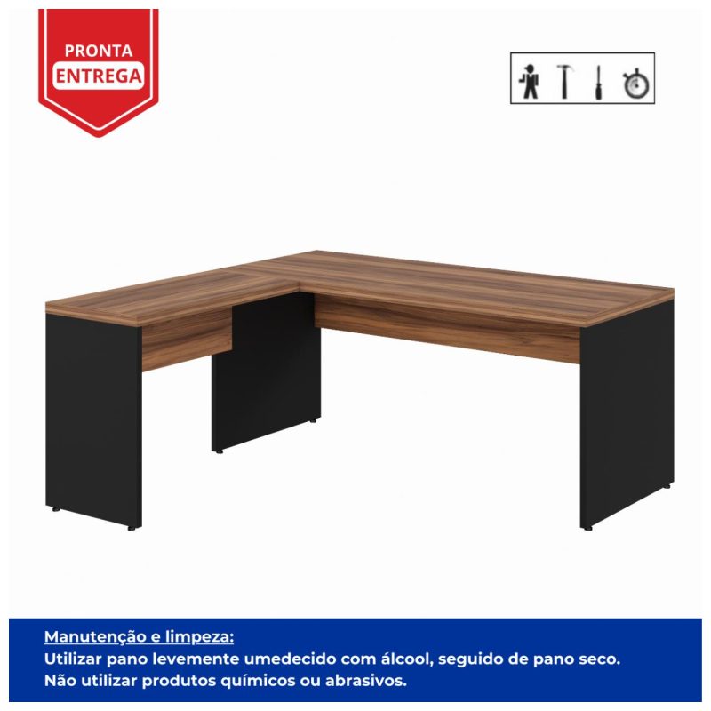 Mesa Escritório em L 1,70m + Mesa Auxiliar S/ Gavetas Nogal Sevilha/Preto 21478