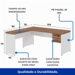 Mesa em L (Mesa 1,70m + Mesa Auxiliar) – S/ Gavetas – WORKSTART – NOGAL SEVILHA/BRANCO – 34325