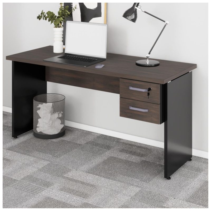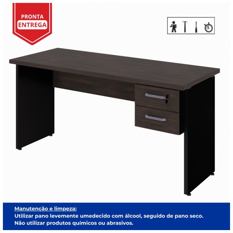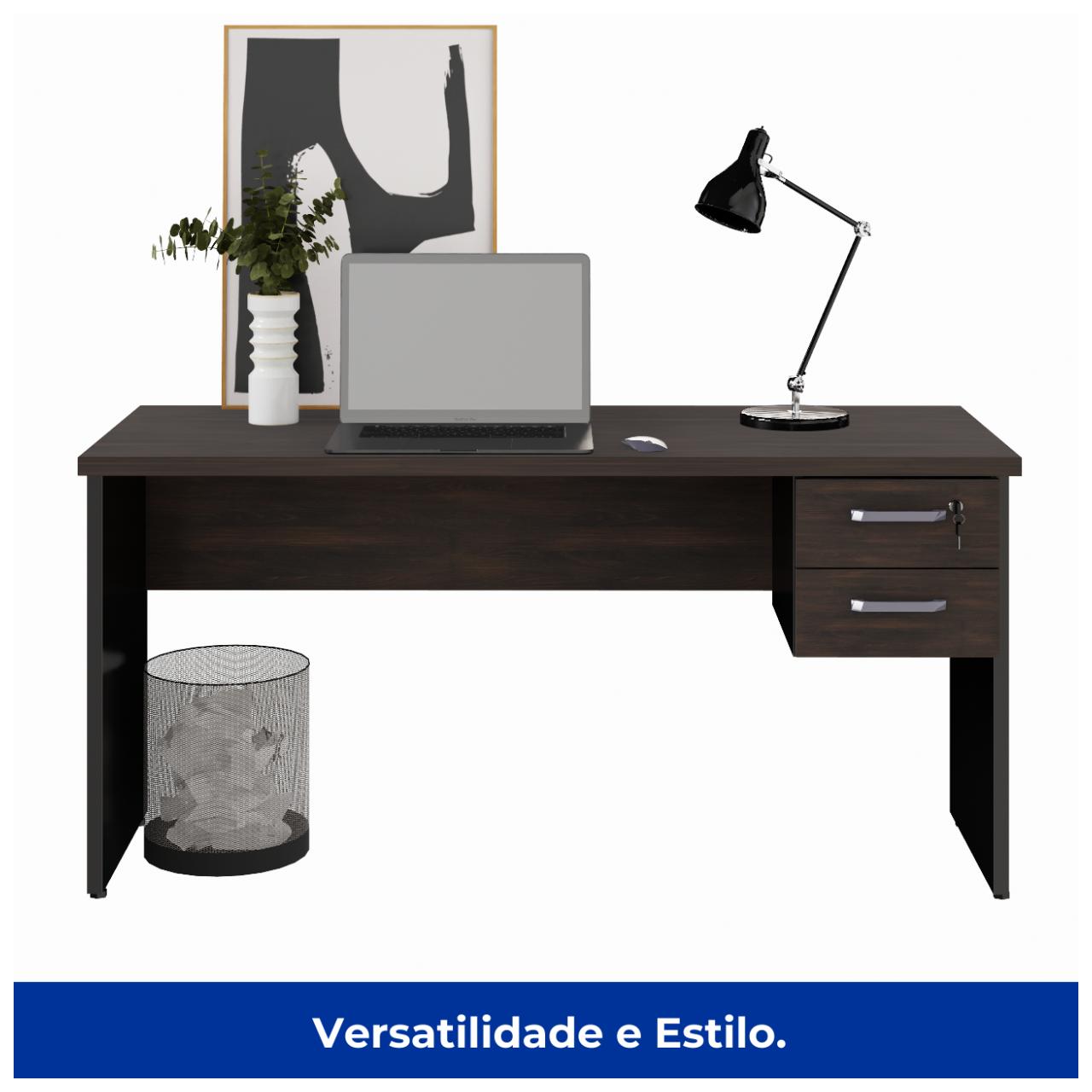 Mesa Escritório 1,50×0,60m – C/ 02 Gavetas MARSALA / PRETO – 23473