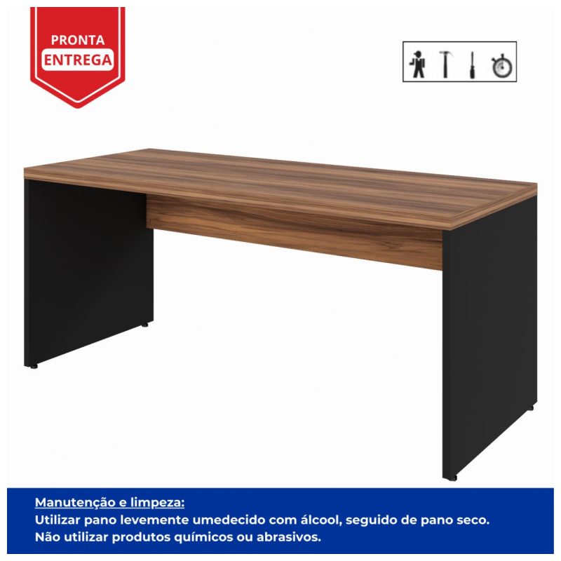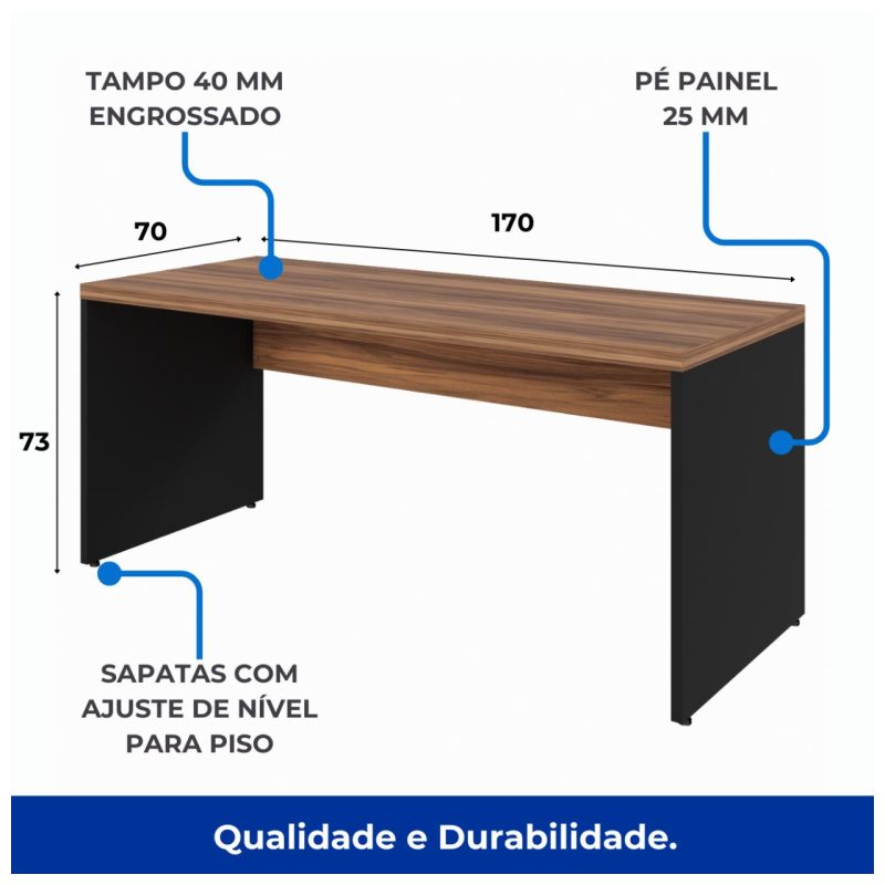 Mesa Escritório 1,70×0,70m – Sem Gavetas NOGAL SEVILHA/PRETO – 21474