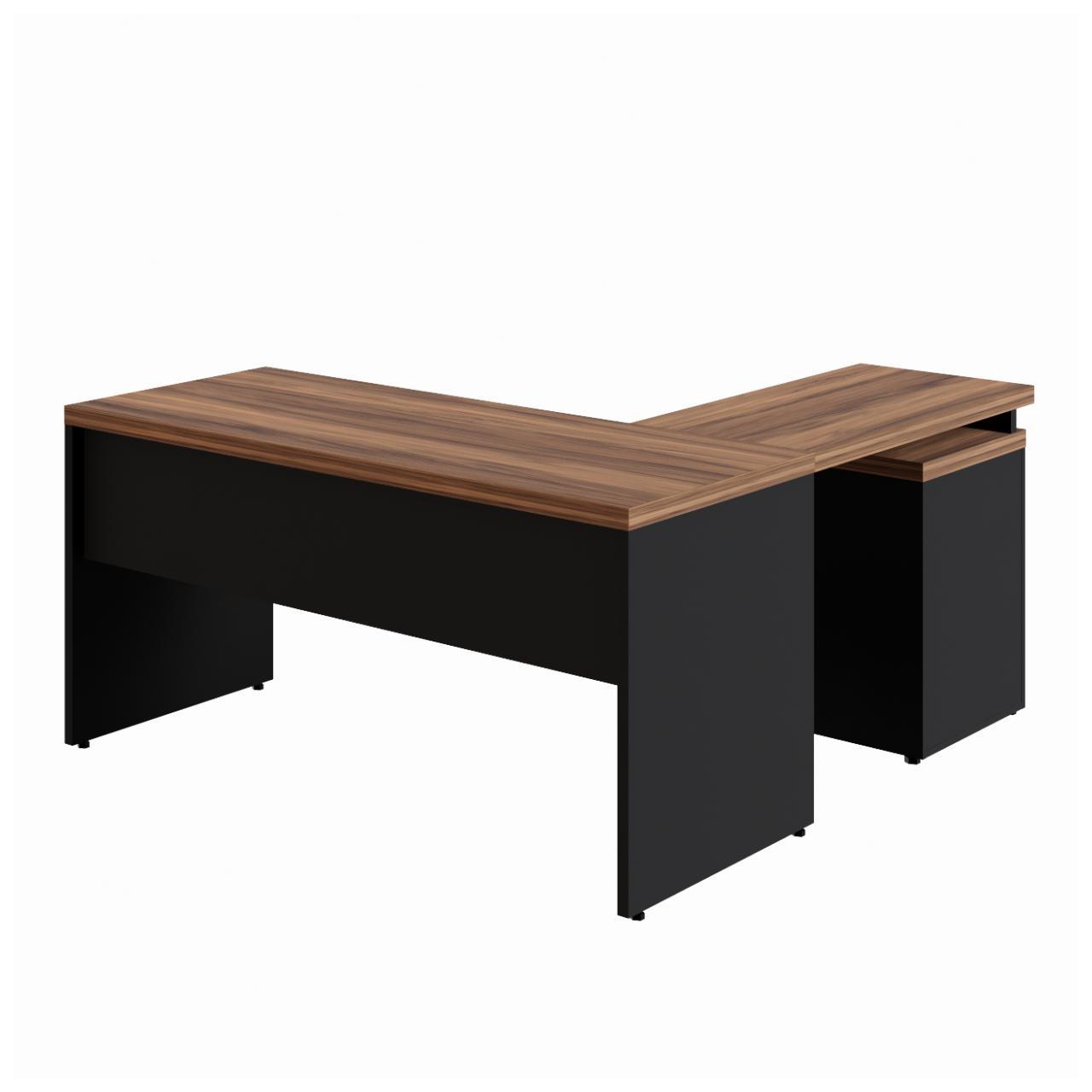 Mesa Escritório em “L” c/ Gaveteiro 1,50×1,50m NOGAL SEVILHA/PRETO – 21416