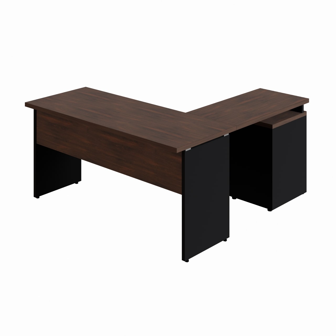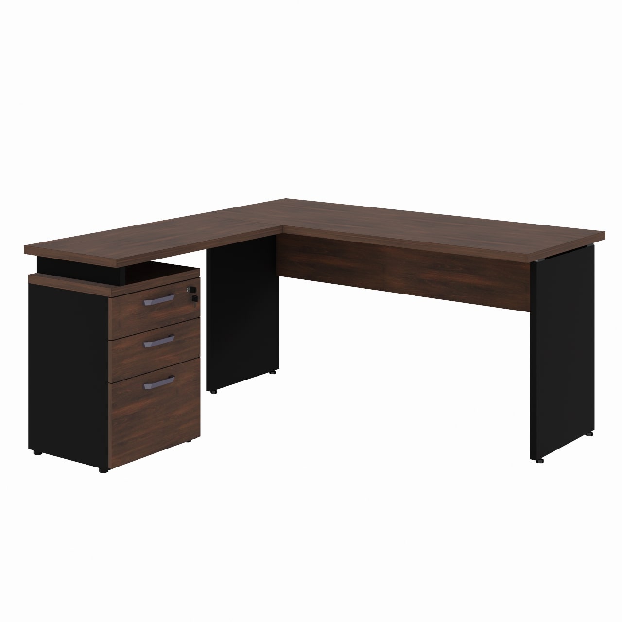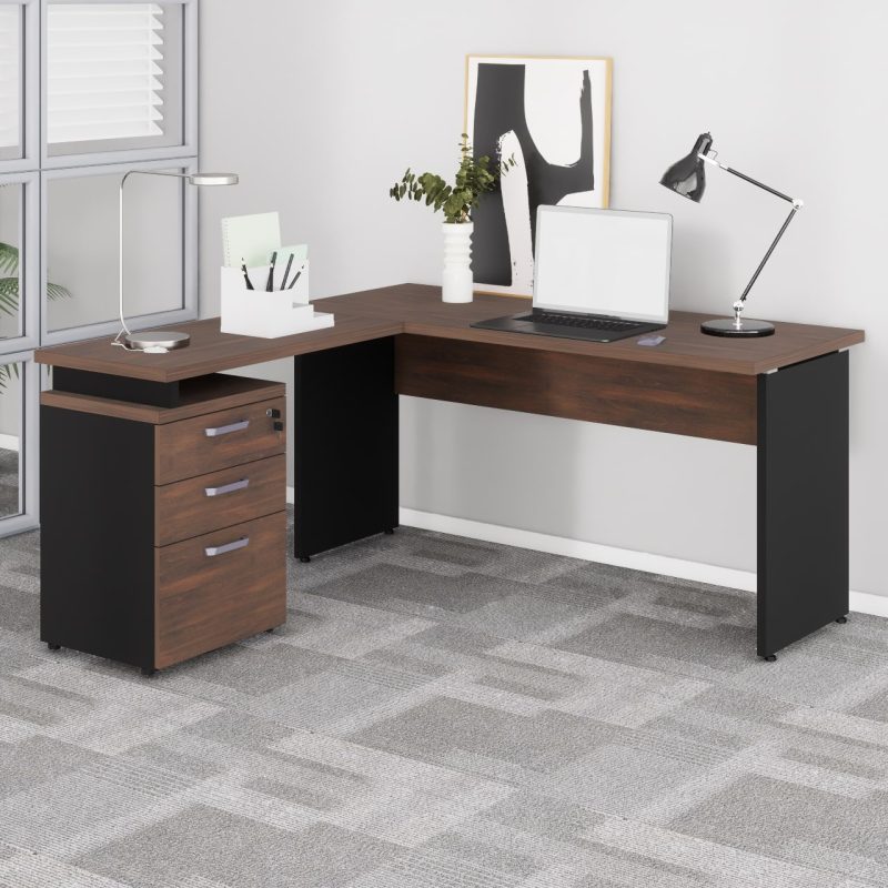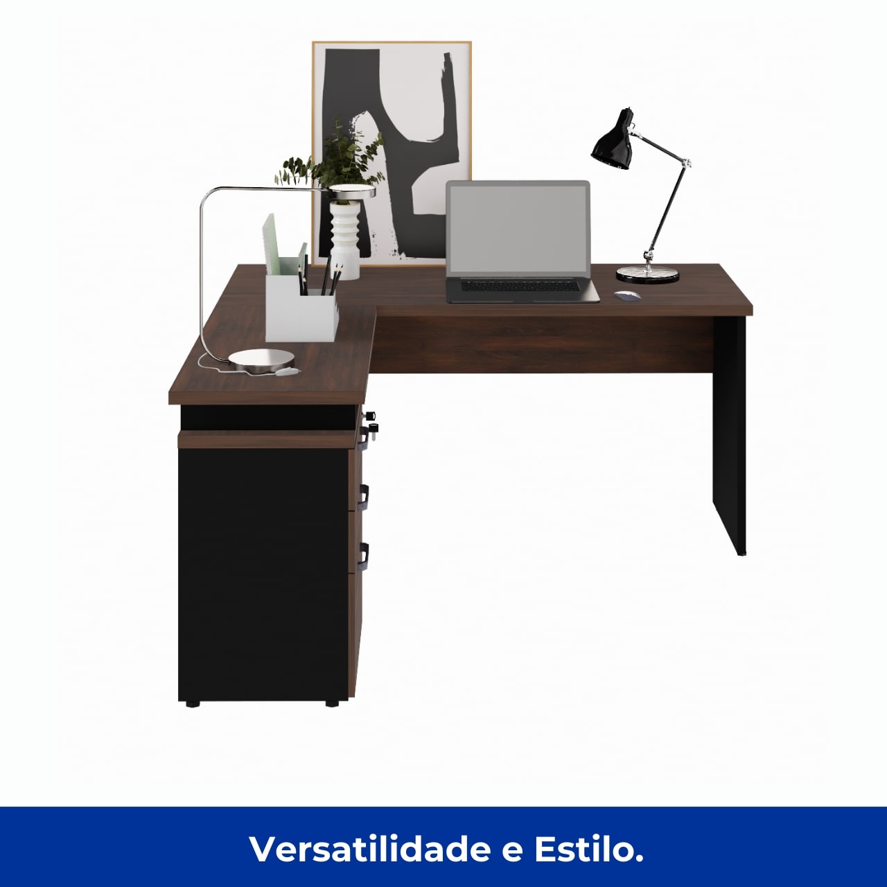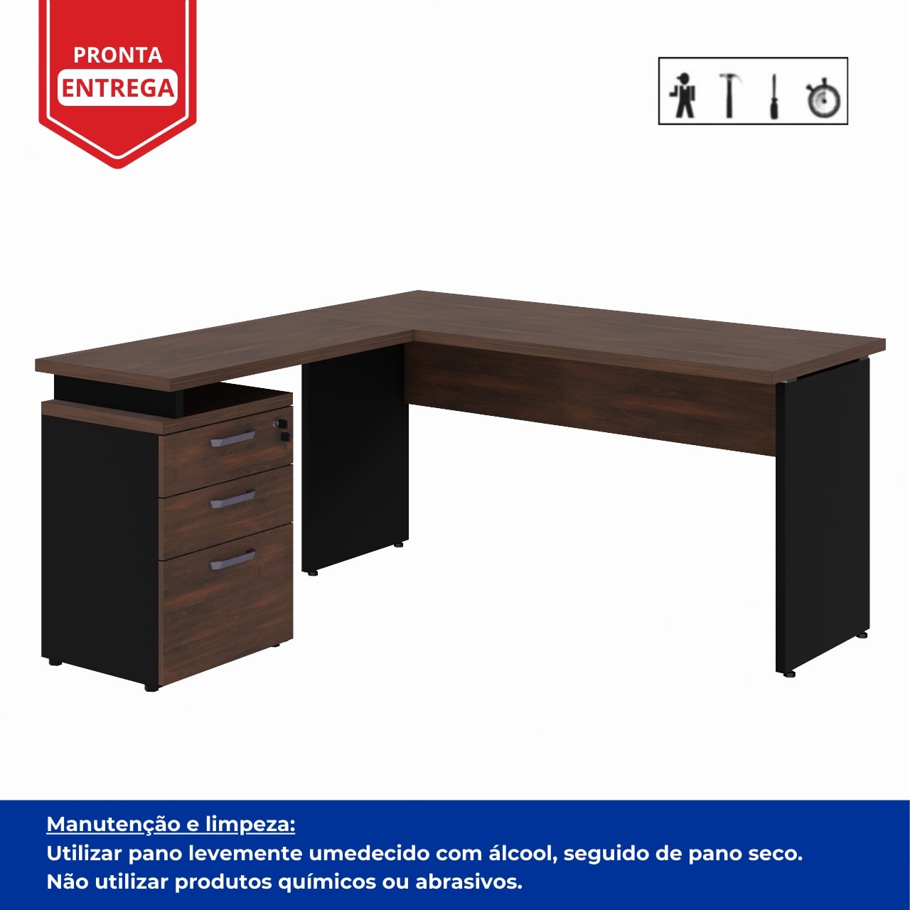 Mesa Escritório em “L” c/ Gaveteiro 1,50×1,50m MARSALA/PRETO – 23480