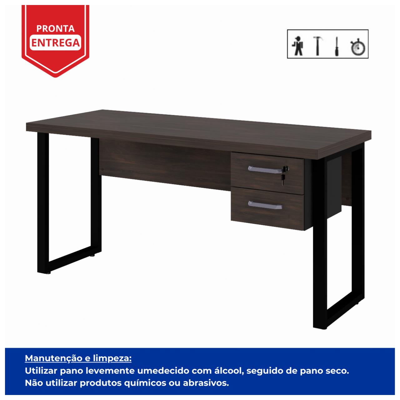 Mesa Escritório PÉ QUADRO 1,50×0,60m – C/ Gavetas – MARSALA/PRETO – 25473