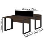 Mesa Estação de Trabalho Dupla 1,50×1,35m 2 Lugares s/ Gavetas c/ ponto de tomada PÉ QUADRO MARSALA/PRETO – 64002
