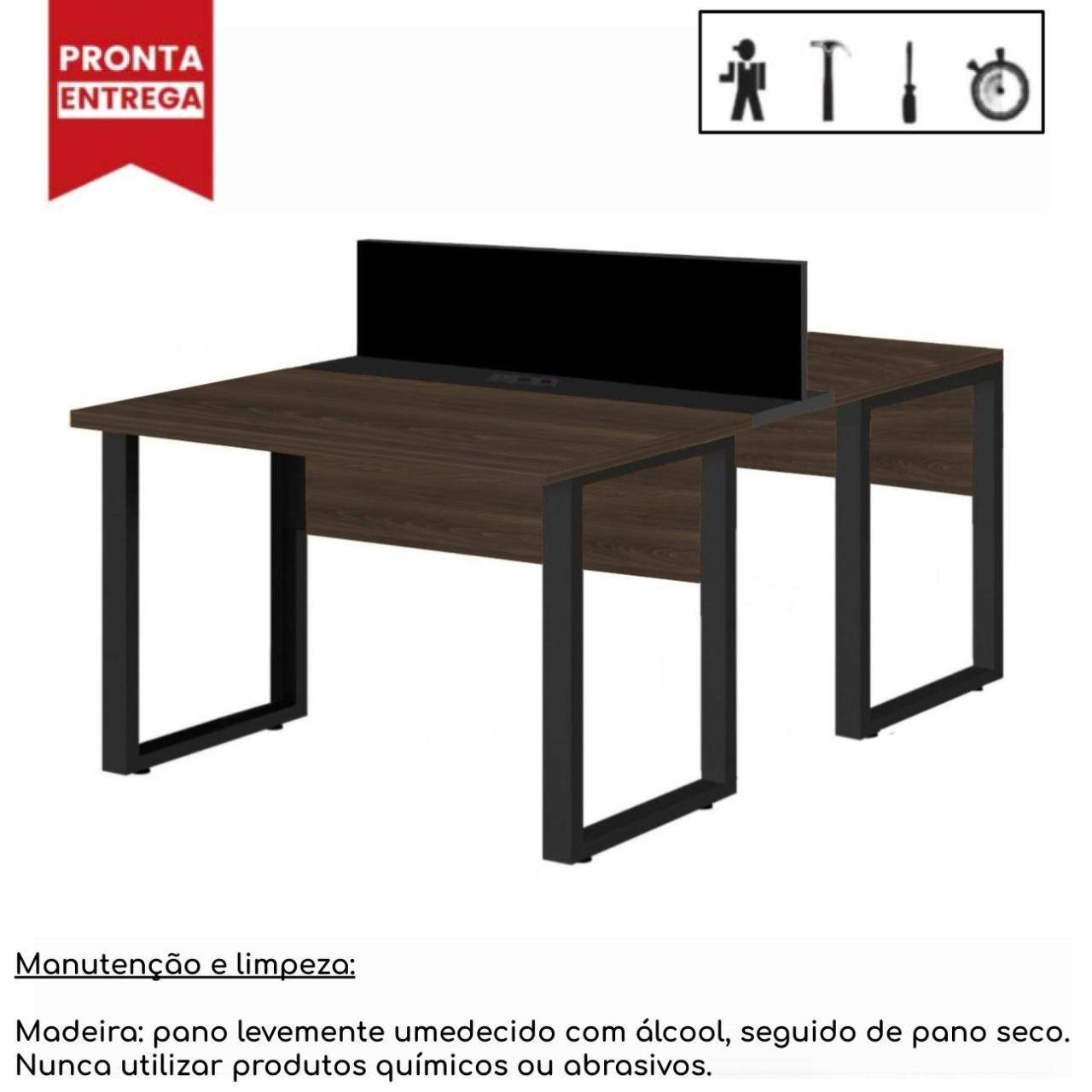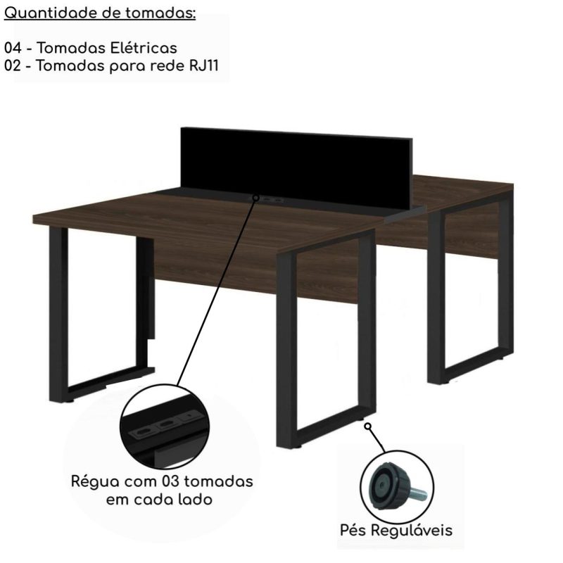 Mesa Estação de Trabalho Dupla 1,50×1,35m 2 Lugares c/ Gavetas c/ ponto de tomada PÉ QUADRO MARSALA/PRETO – 64003