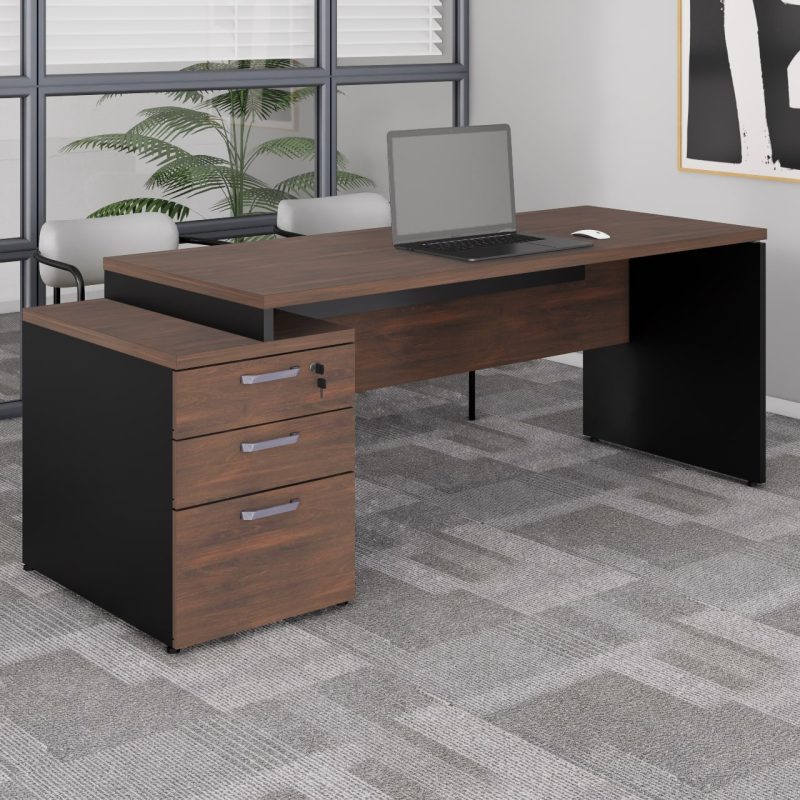 Composição: MESA DIRETOR DINÂMICA COM GAVETEIRO PEDESTAL (02 Gavetas e 01 Pasta) – tampo 1700X700mm / VIDRO TEMPERADO PARA MESA DIRETOR