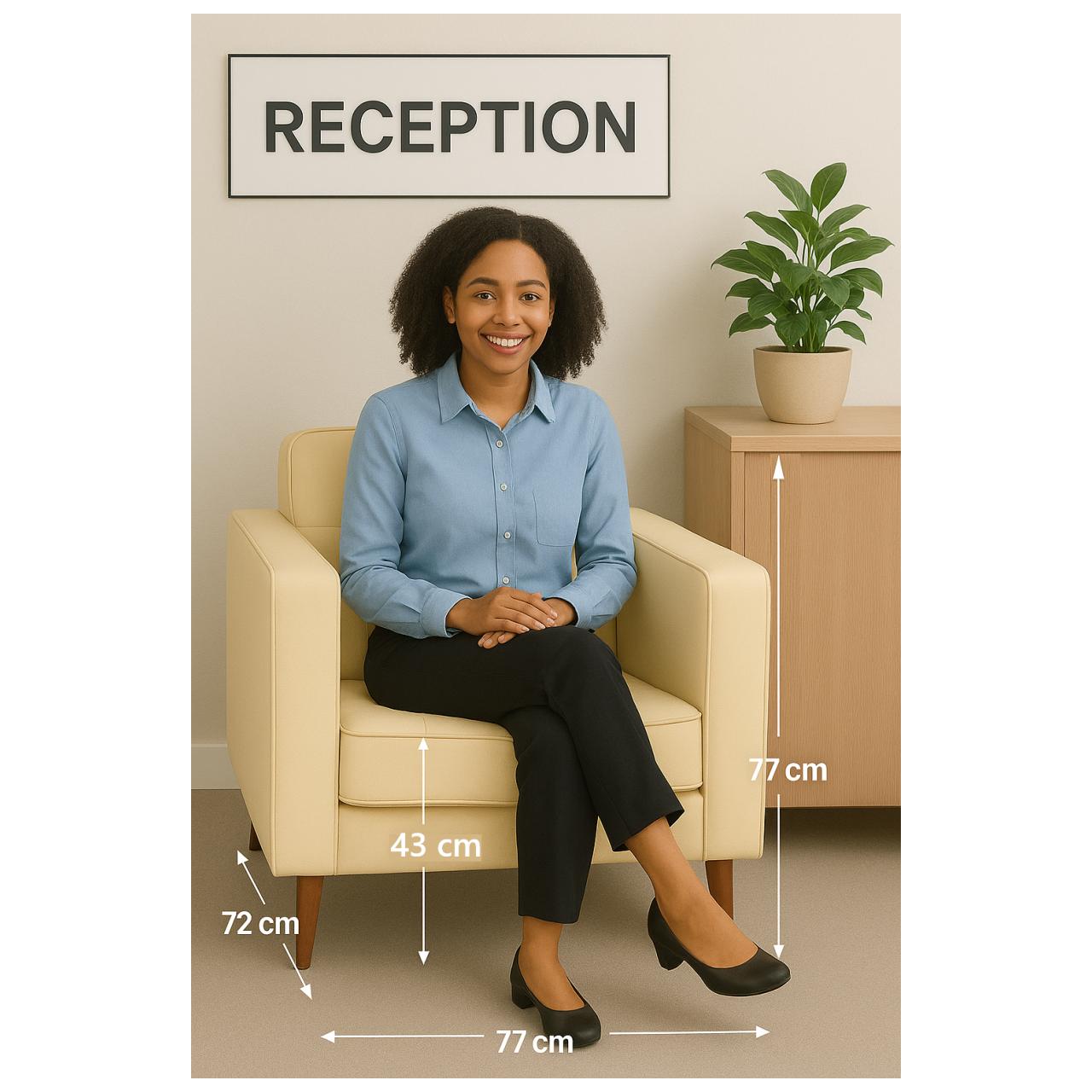 Poltrona ideal para ambientes corporativos, recepções e salas de espera, unindo conforto, elegância e funcionalidade. Seu design compacto e moderno combina com diversos estilos de decoração, oferecendo acolhimento ao usuário sem comprometer o espaço.
