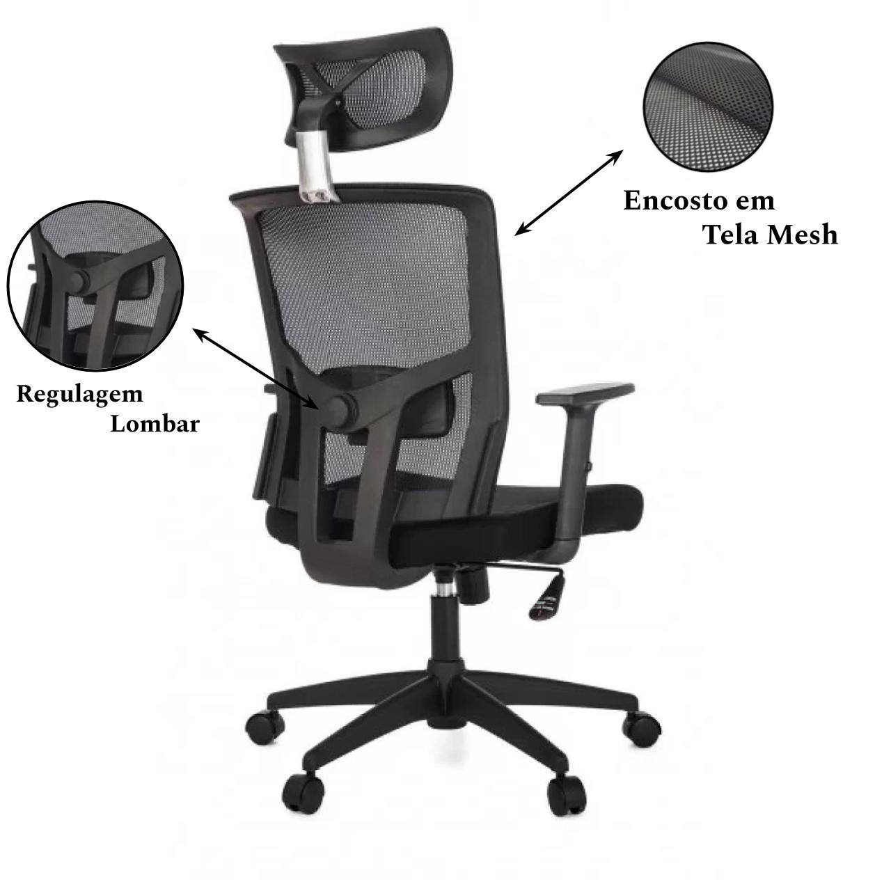 Produto: Poltrona Presidente Tela ANM-312P – C/ Encosto de Cabeça – Cor Preto – PMD – 32981