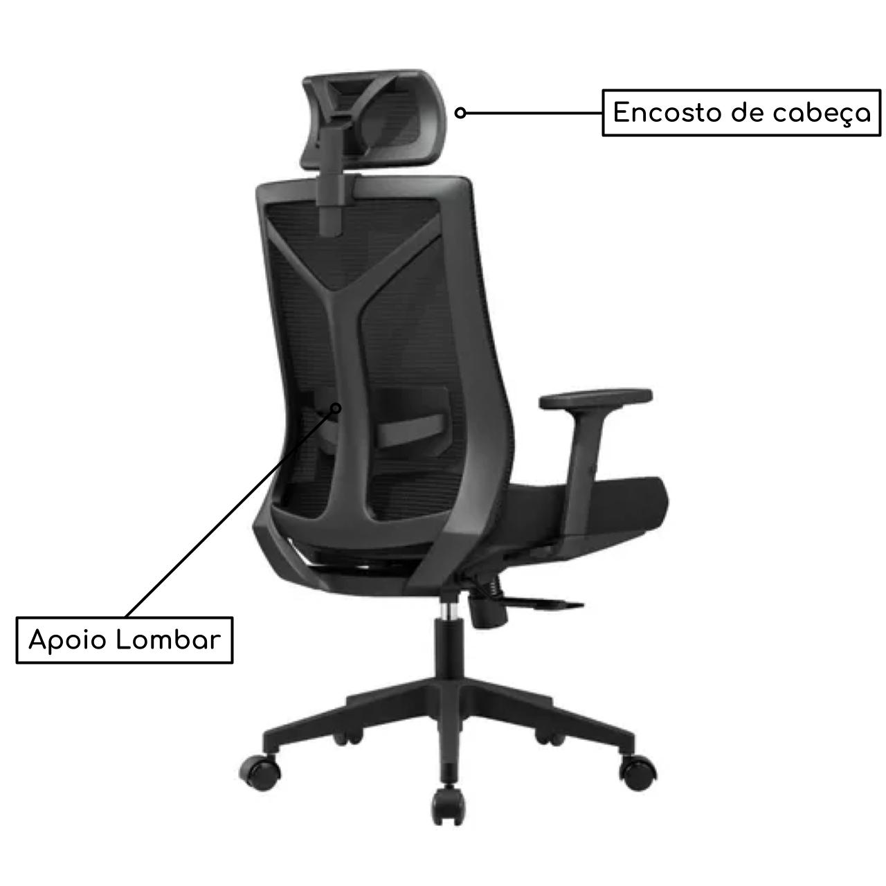 Poltrona Presidente TELA ODIN Giratória – Cor Preto – Pollo Móveis – 32870