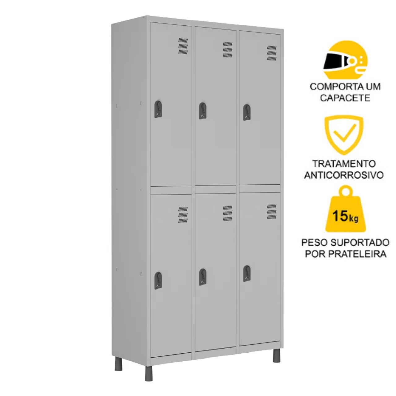 Roupeiro de Aço c/ 06 PORTAS GRANDES - 1,84x0,96x0,35m - CZ/CZ - W3 - 10913