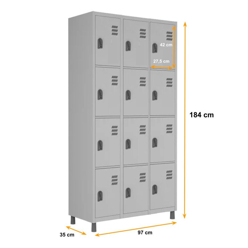 Roupeiro de Aço c/ 12 Portas PEQUENAS – 1,84×0,96×0,35m – CZ/CZ – W3 – 10911
